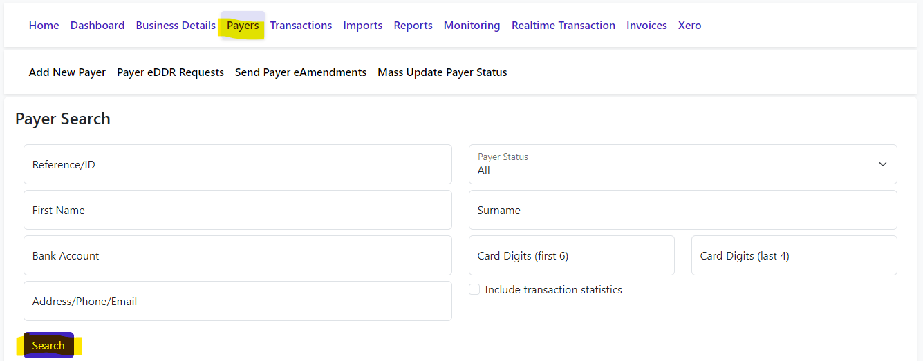 Click Payers from the main menu.