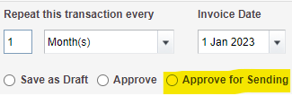 When you’ve finished creating the invoice, and it’s ready to go to your customer, click Approve for sending – you’ll find this at the top of the form, underneath the date fields.