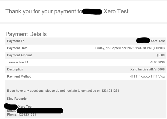 Your customer will also receive an email receipt for the successful payment.