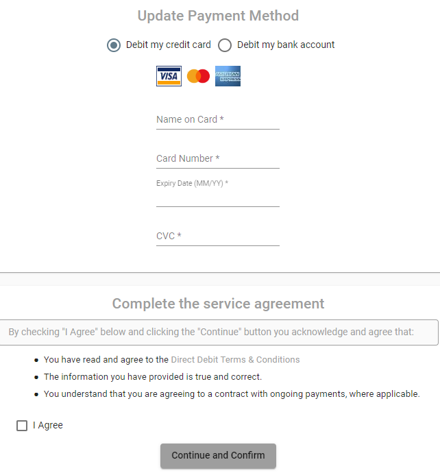 The customer can then update their details and authorise ongoing payments.