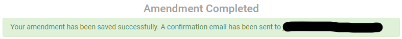 An ‘amendment complete’ message is then displayed.