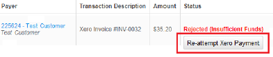 For all invoices after the first one, you (the biller) can re-attempt the transaction by clicking the Re-attempt Xero payment. This button will only be visible for 60 days after the original transaction.