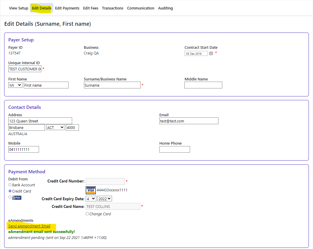 The customer’s new payment details will be updated automatically in the Payments Portal.
