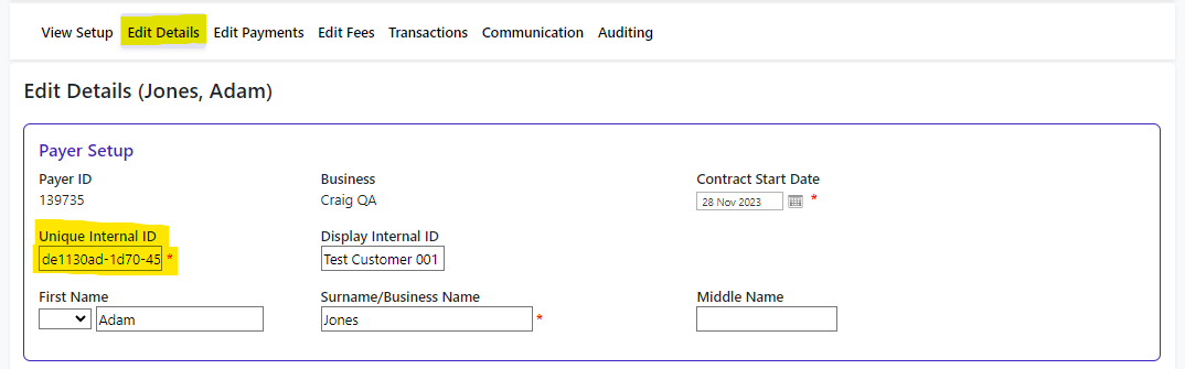 On the Payer Details page, the Business Unique ID is referred to as the Unique Internal ID – they’re exactly the same thing.