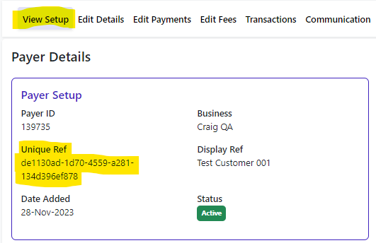 Your customer’s details will be displayed on a Payer Setup page.