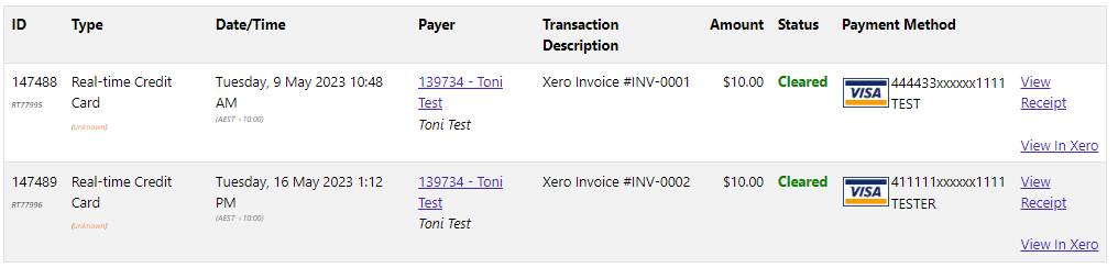 A list of all your Xero payments will be displayed.